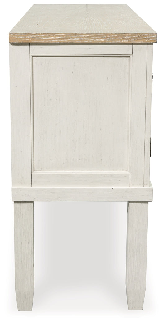 This dining server elevates the art of modern farmhouse design. Its two-tone aesthetic blends antiqued white and light grayish brown for a charming finish. Two windowpane doors with adjustable shelves and dark rustic bar pulls convey a feeling of relaxed comfort. Now your only worry is what to serve for dinner.